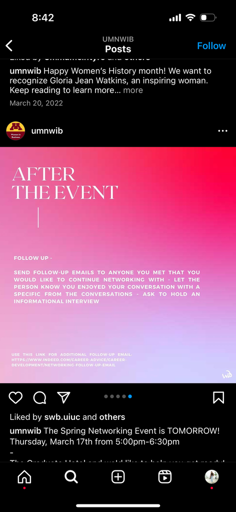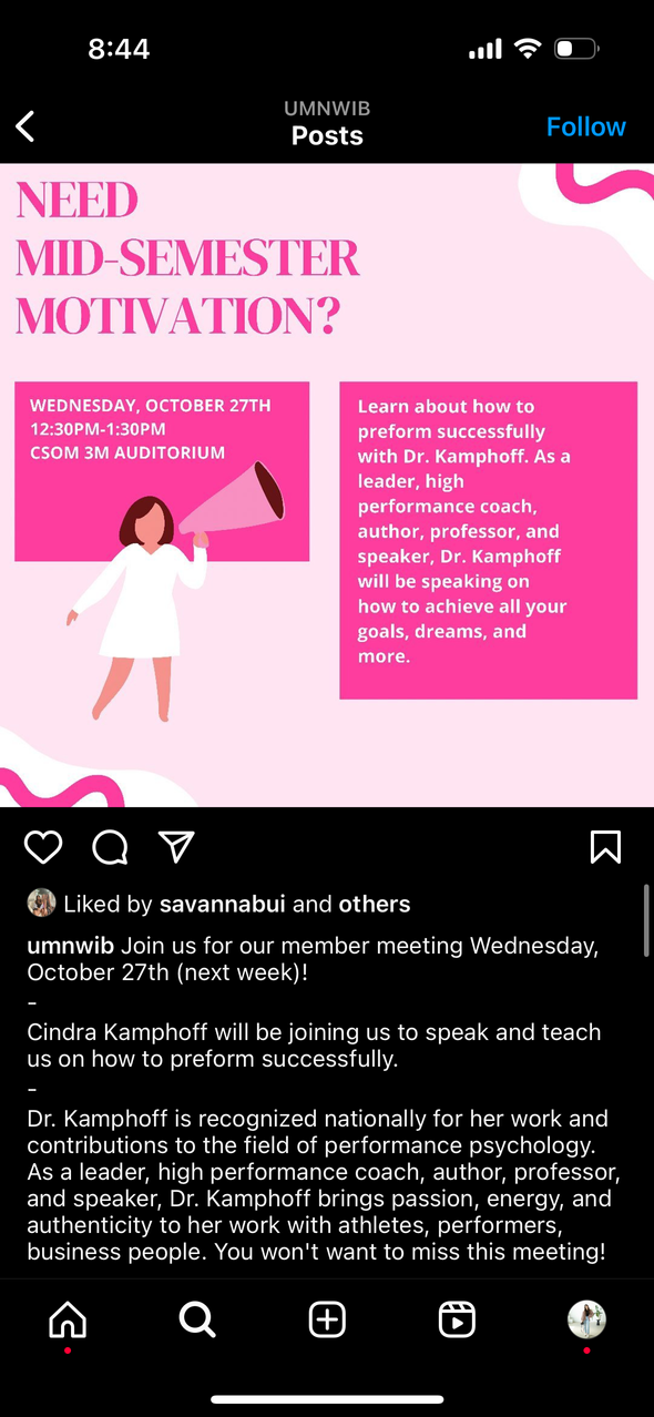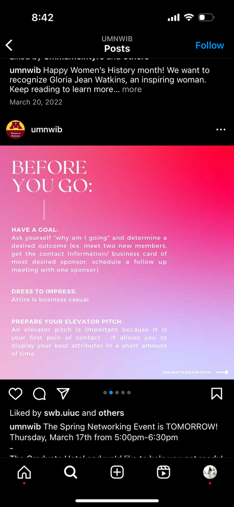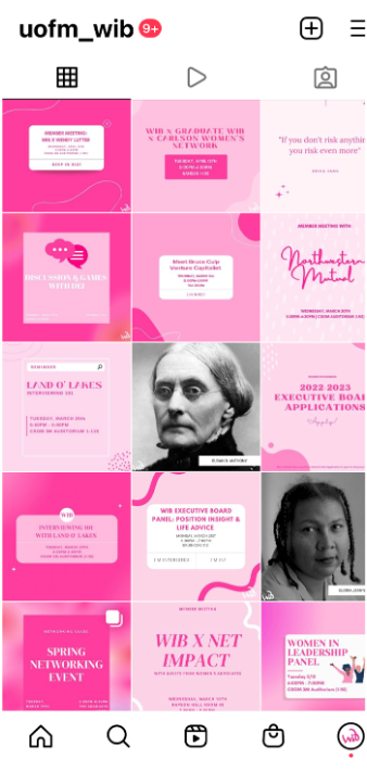Produced and shared content on Women In Business UMN's social media channels that aligned with the preferred color scheme and theme.
